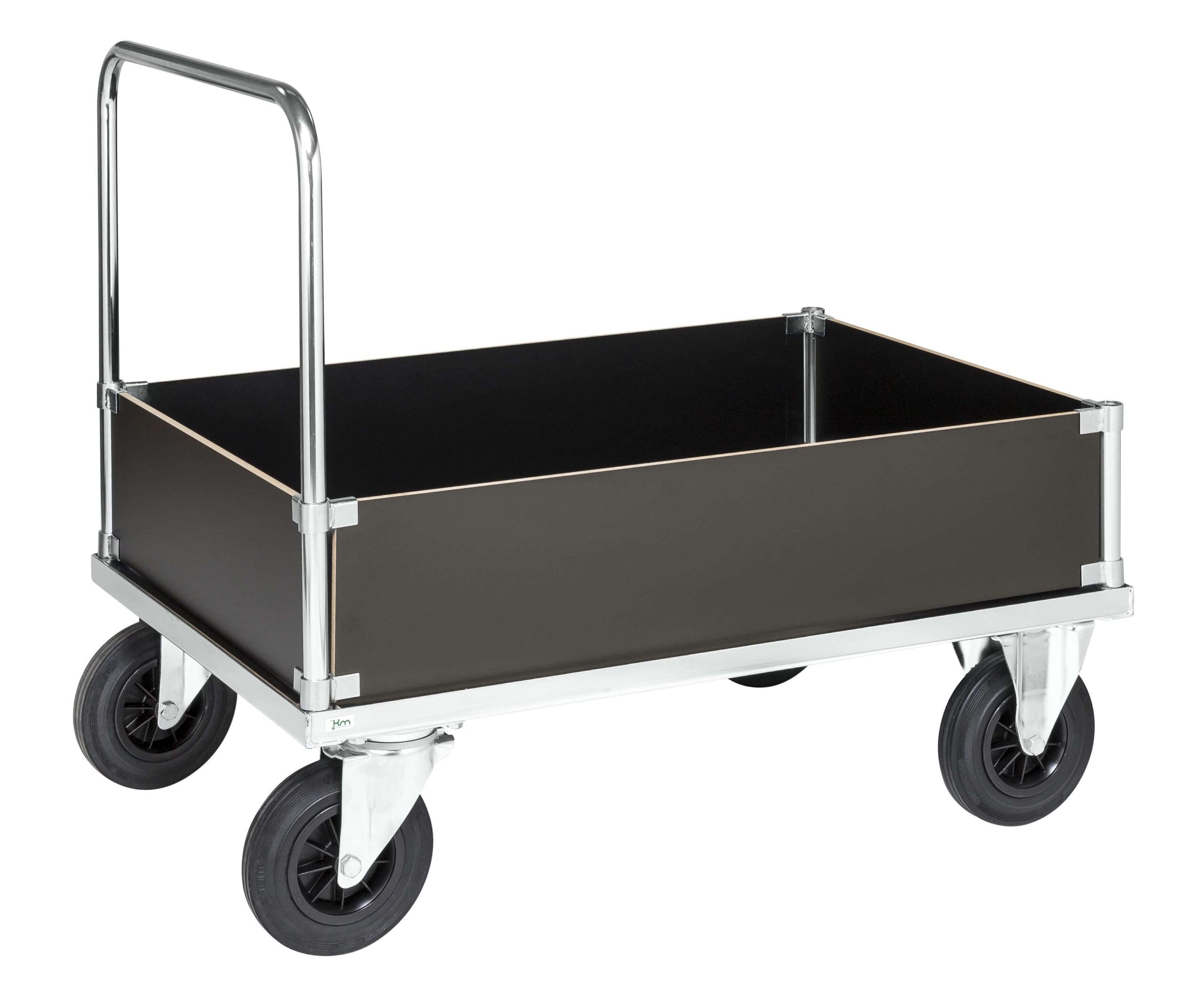 The low edge and accessible deck help reduce unnecessary lifting during loading. Boxes, bins and packed items can often be placed or slid onto the platform more naturally, which helps keep work moving at a steady pace. Another benefit of the low-sided format is visibility. Because the sides stay low, the load remains easier to oversee while the trolley is being moved. That can make positioning, turning and unloading more controlled, especially in tighter spaces or when the operator needs a clear view over the platform.