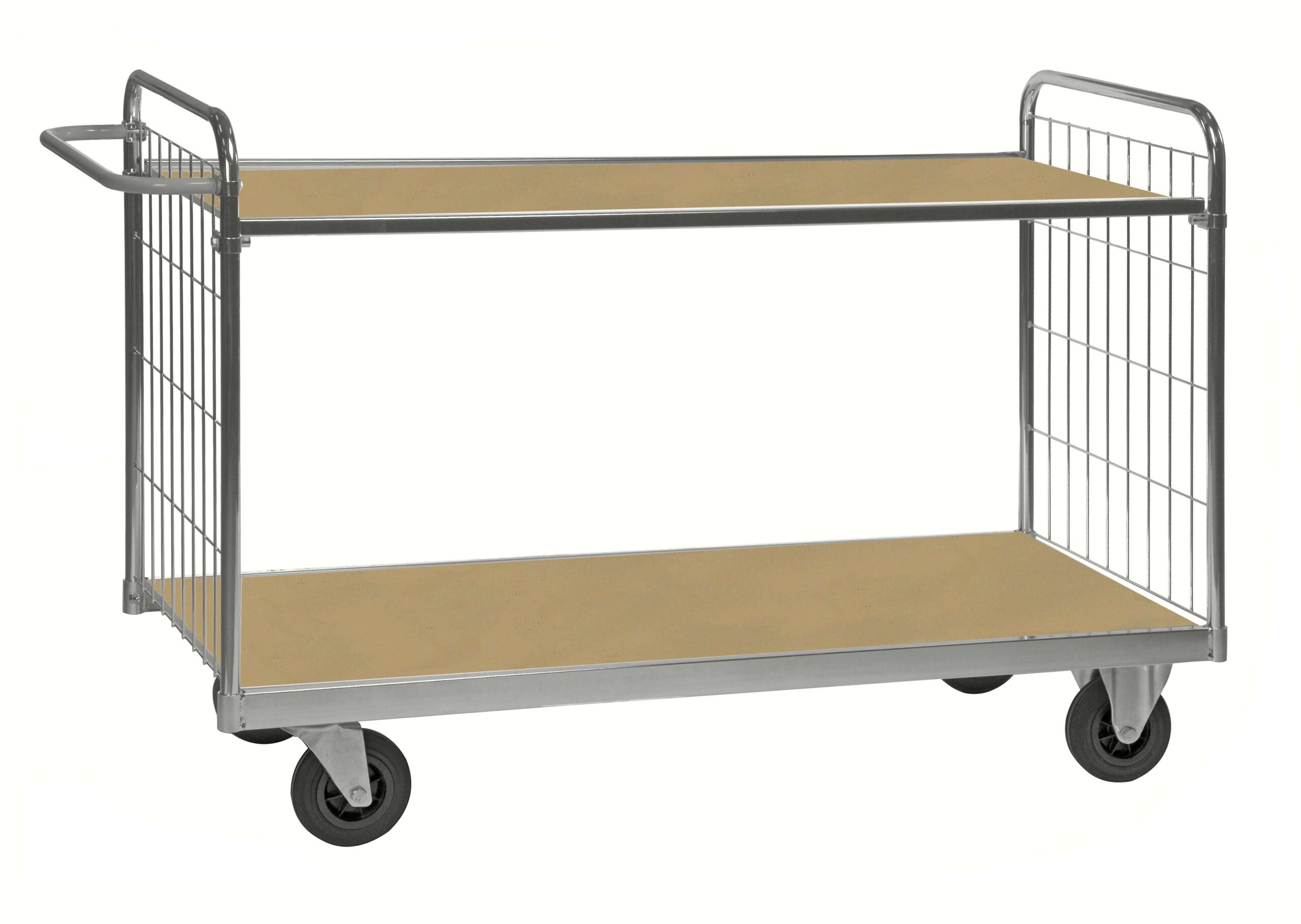 Good manoeuvrability matters when routes run past benches, machines and narrow aisles. The 9000 Series ESD trolley uses four swivel castors, making it easier to turn, reposition and guide through changing work areas. The trolley is available with or without brakes, so you can match it to the working environment.