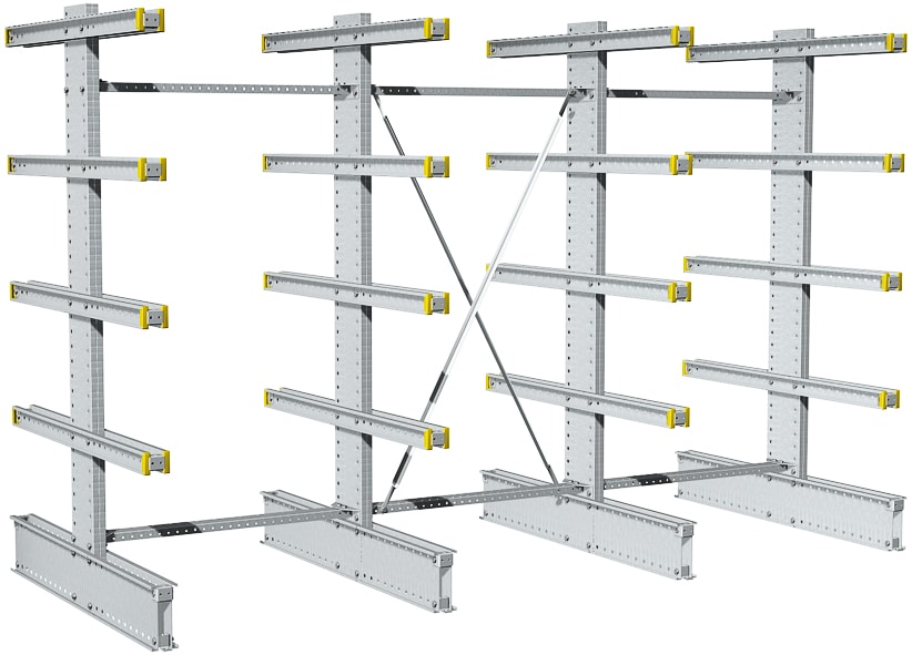 | Configuration | Double-sided cantilever racking, 4 uprights |