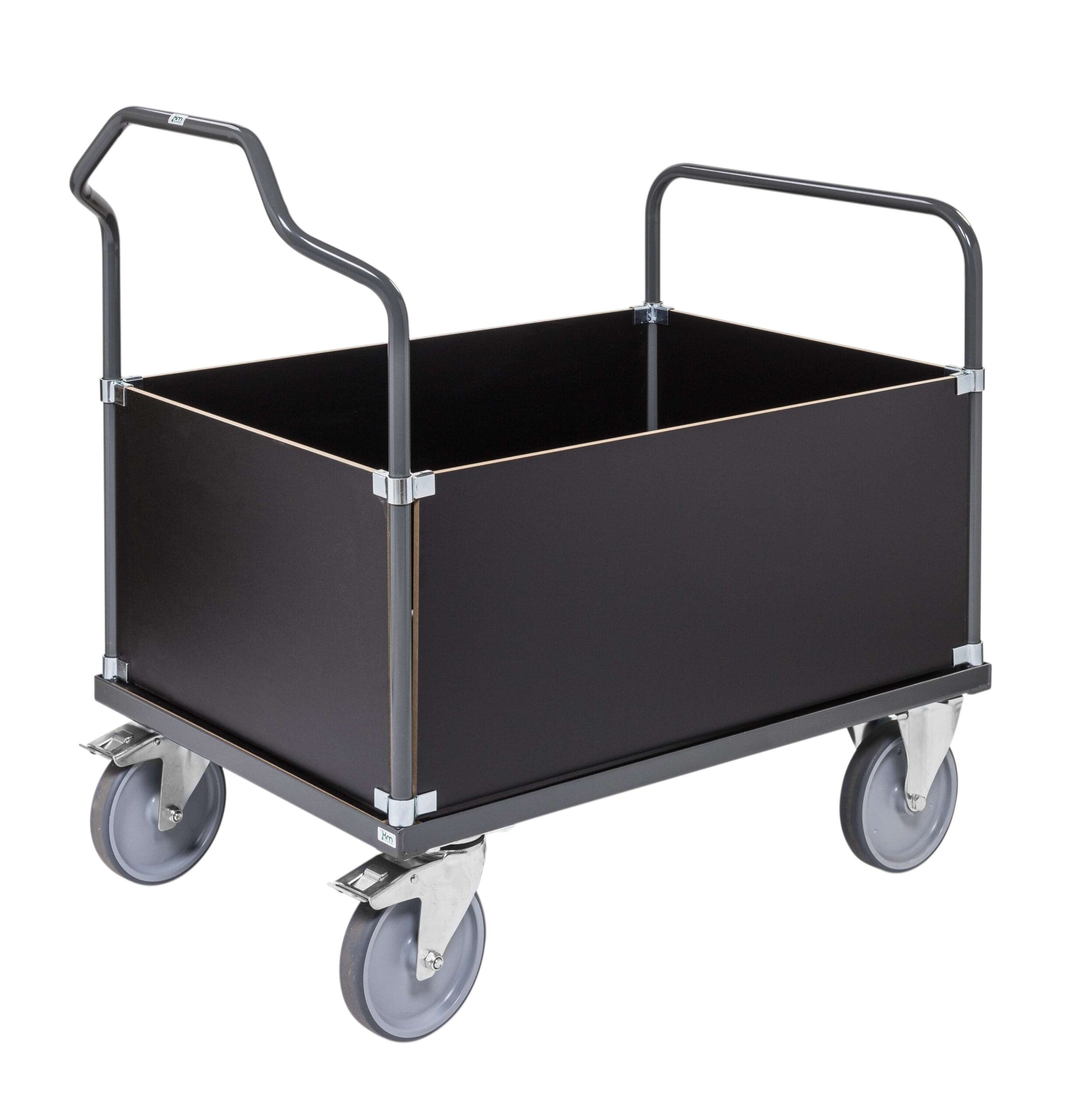 One of the clear advantages of a platform trolley with sides is that the load stays where it should. When boxes, loose parts or smaller packages are moved between storage, packing, production and dispatch, items can shift during turns or stop-start movement. The high side panels help reduce that movement by giving the load support around the platform.