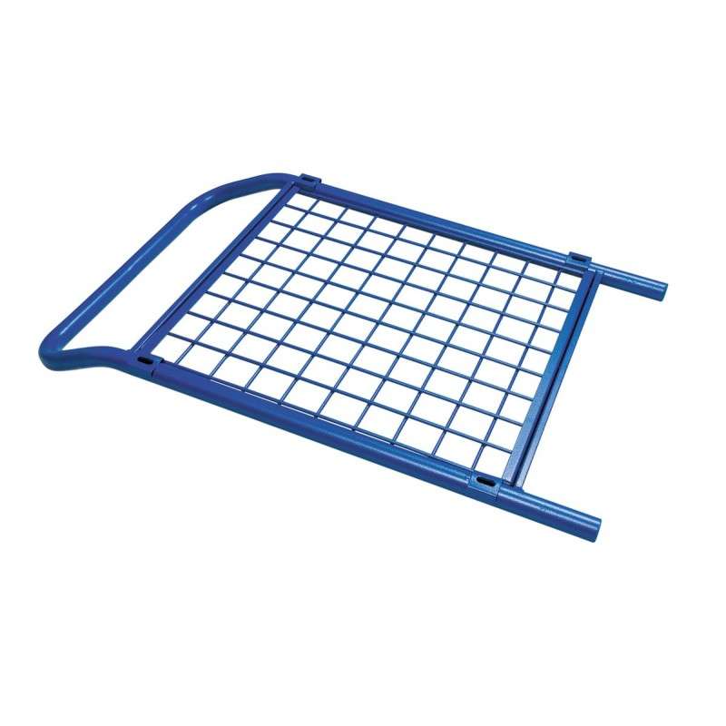 An open deck is quick to load, but the first corner soon shows whether the load is really under control. This mesh end panel with integrated push handle is made for the 800 kg platform trolley and adds steering control and end support in one part. The steel mesh helps stop cartons, totes and loose goods from shifting off the short side, while the handle gives a comfortable grip for daily warehouse moves.