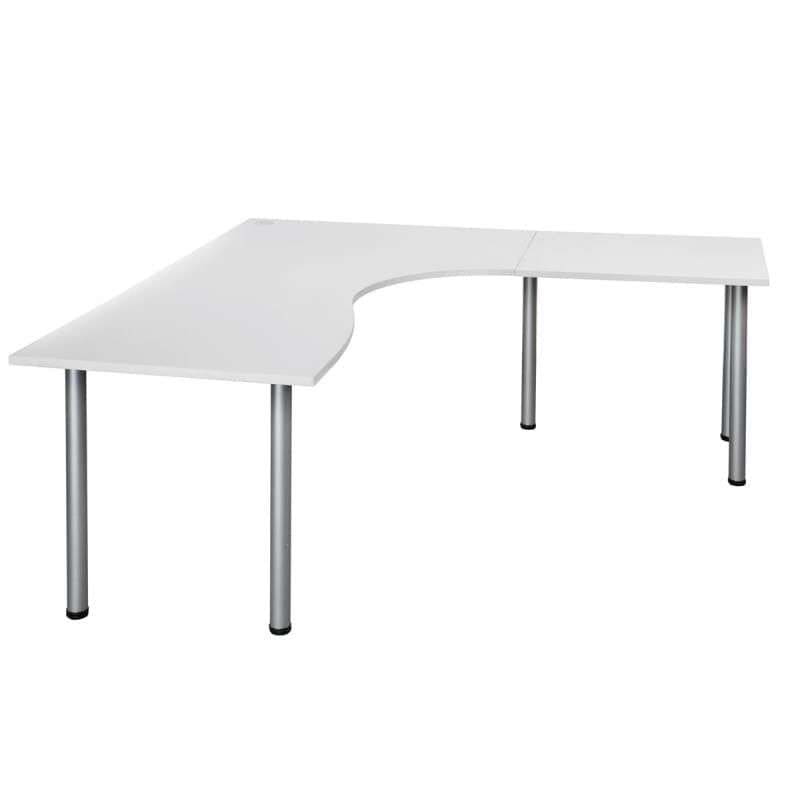 Economy L-shaped office desk that makes the most of a corner. The reversible corner layout lets you build the desktop left- or right-handed so one SKU fits different rooms and users. The white melamine top is finished with PVC edge banding to protect the sides from knocks and routine cleaning. Ø 60 mm adjustable legs give the desk a solid stance and allow 710–720 mm height adjustment for easy levelling on uneven floors.
