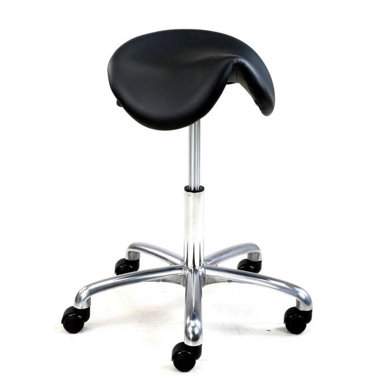 A Ø 600 mm polished aluminium five‑star base keeps the saddle stool planted without unnecessary weight. Soft‑rolling PU castors run quietly on hard floors, leave no marks, and make fine repositioning effortless, even in open‑plan offices or lab corridors.