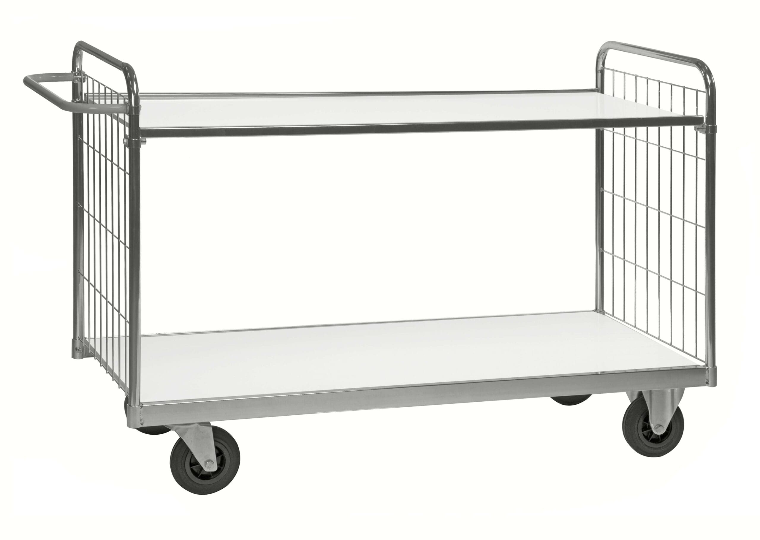 When a standard trolley starts to feel cramped, but a tall multi-level model would be more than the job needs, the Series 9000 order picking trolley with 2 shelves is a practical fit. It gives you generous carrying space, a stable two-level layout and easy access to goods during order picking, stock replenishment and internal transport.