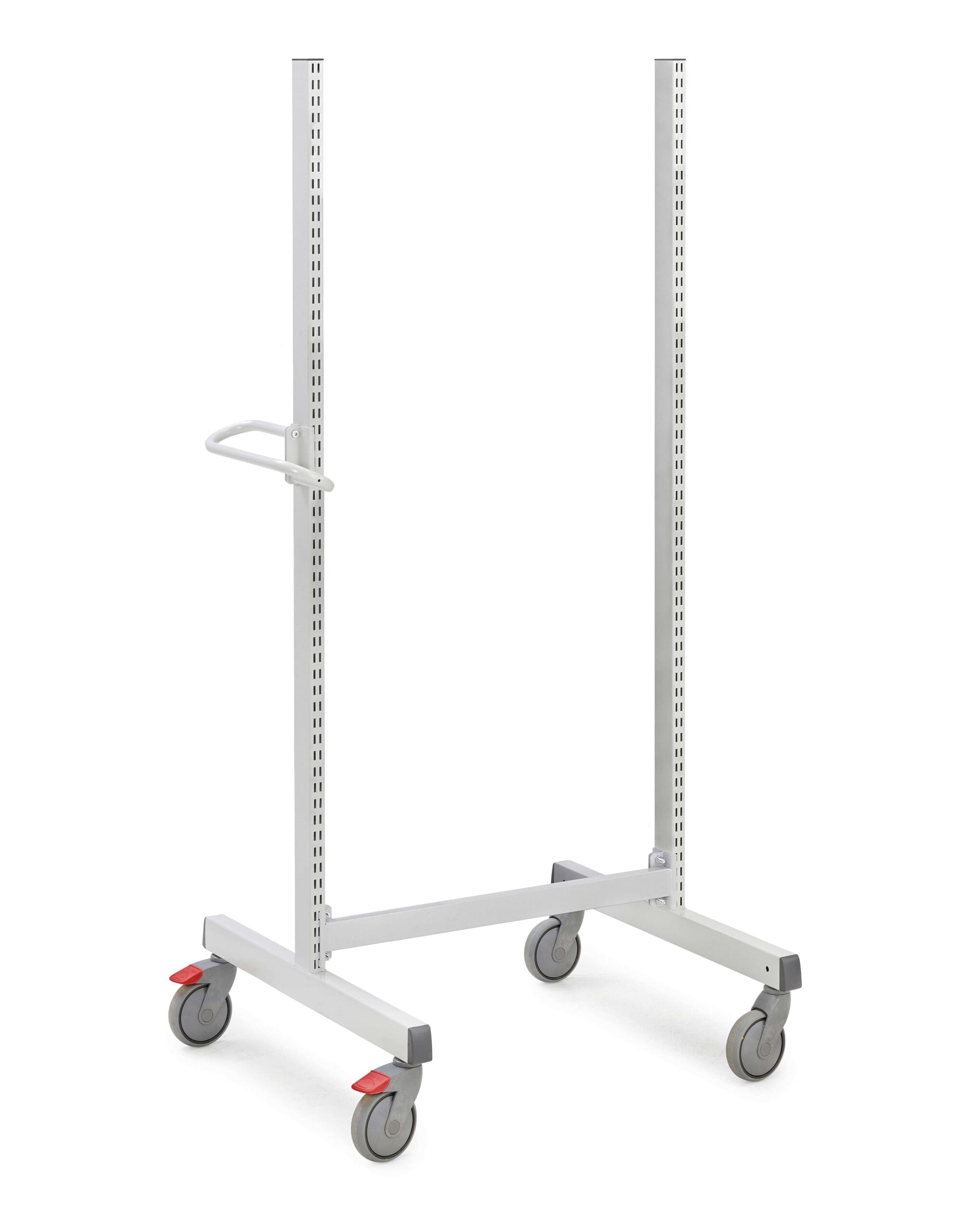 The high frame makes it easy to add shelves, picking bins, perforated panels and perforated panel cabinets without taking up extra floor space. An ergonomic handle and four 125 mm swivel castors make the trolley easy to steer, while two braked castors help keep it firmly in place during loading, picking and workstation use.
