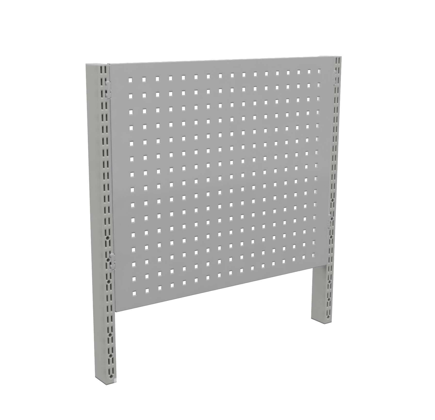 A defining feature of this steel pegboard is the 9 × 9 mm square perforation with 38 mm centre‑to‑centre spacing. This European square‑hole format is widely used across professional tool‑board systems and supports hooks, brackets, bin rails and accessory shelves.