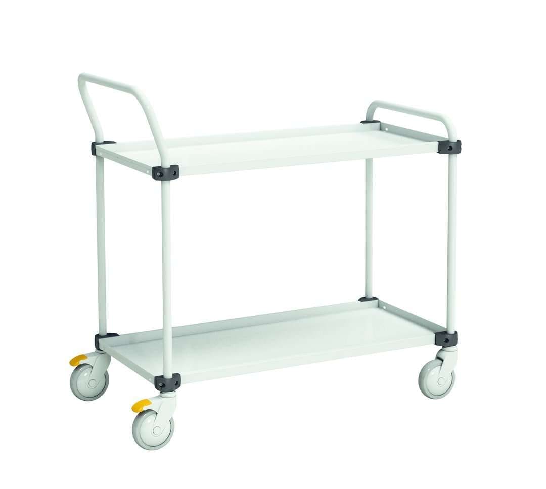 Treston TRTA 2-shelf trolley is made for everyday internal transport and temporary storage in warehouses, offices, workshops and production areas where reliability, clear access and easy handling matter. This shelf trolley has two open levels, a sturdy frame and smooth-running swivel castors. The design is simple on purpose: it gives enough carrying space for common materials while keeping the trolley easy to steer through aisles, between desks or around a packing area. The open structure also makes it easy to see what is on board, which helps during picking rounds, replenishment work and quick stock checks.
