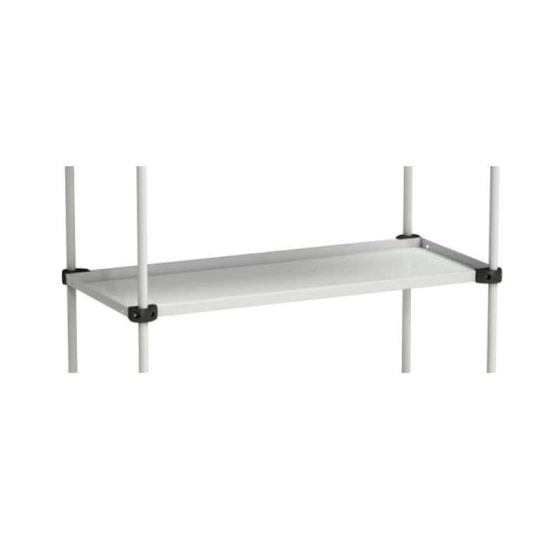The shelf is made of epoxy powder-coated steel and designed specifically for the TRTA trolley system. That matters in practice: the fit is right for the frame, the dimensions match the trolley width and depth, and the shelf works as part of the same modular layout instead of as a generic add-on. The steel construction supports daily use in environments where the trolley moves between workstations, storage points, packing stations and production cells. The shelf has a maximum load of 50 kg.