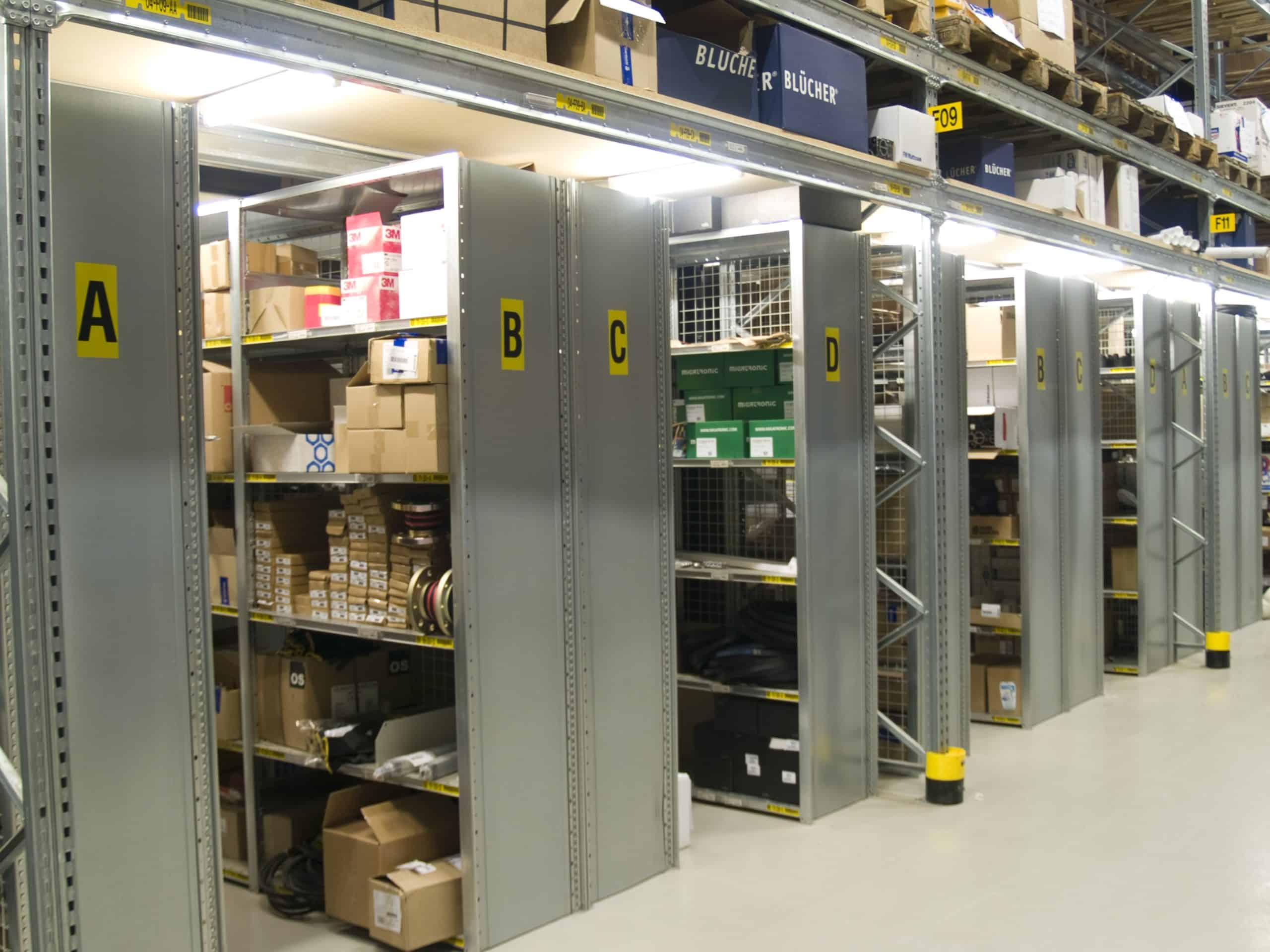 Hyllskåp och andra förvaringsenheter används ofta för reservdelar, verktyg, förbrukning och material som måste hållas skyddat eller låst. Även om ytan är mindre än i ett pallställ är nyttan av hyllmärkning densamma: du vill hitta rätt snabbt och lägga tillbaka på rätt plats varje gång.