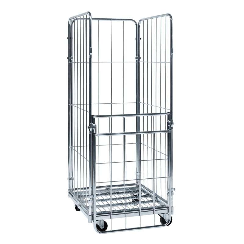 Rullcontainer med tre sidor och halv grind håller godset tryggt på plats och gör plock, lastning och interntransport smidig i lager, butik och produktion. Den elförzinkade stålkonstruktionen tål tuff vardag och tre fullhöga gallerväggar ger fri sikt över innehållet. Halvgrinden på ena långsidan öppnas snabbt när lådor, backar eller en pallstapel ska skjutas in utan att hela sidan behöver frigöras. Två fasta och två länkhjul ger lätt manövrering i trånga gångar.
