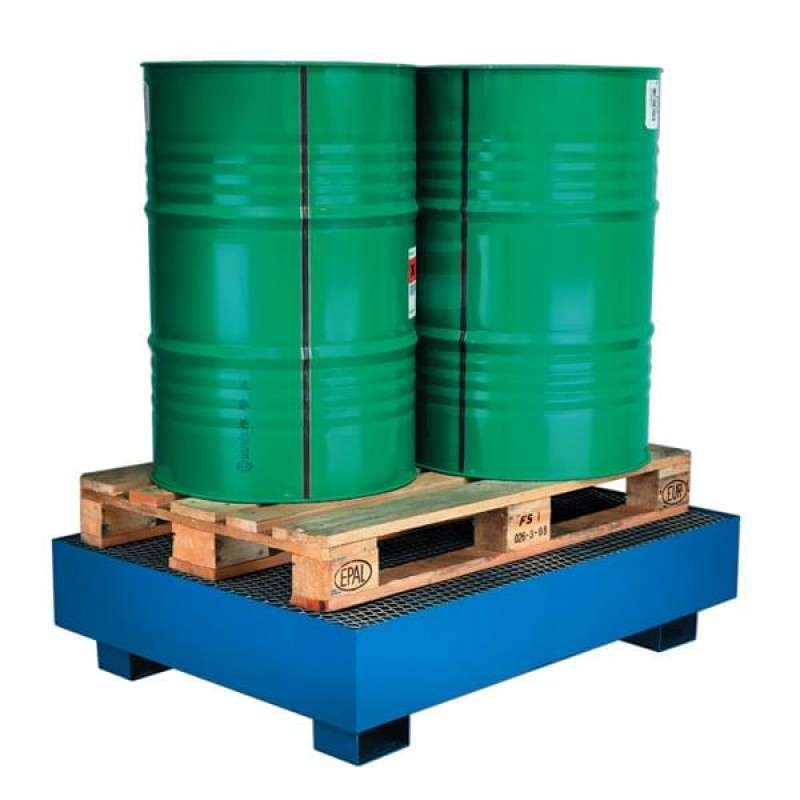 Spillpall i stål med förzinkat galler för fat (2 eller 4 fat)