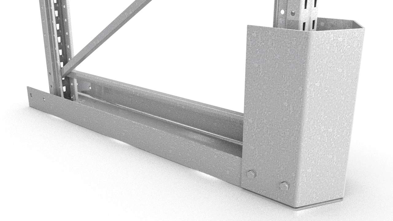 Detta galvaniserade stolpskydd (påkörningsskydd) är avsett för pallställ som monteras på golvskena UNP220 och hjälper till att leda bort påkörningskraften från stolpramen. Det minskar risken för skeva stolpar, dyra reparationer och onödiga driftstopp i plockgångar, vid in- och utlastning och där trafiken är som mest intensiv.