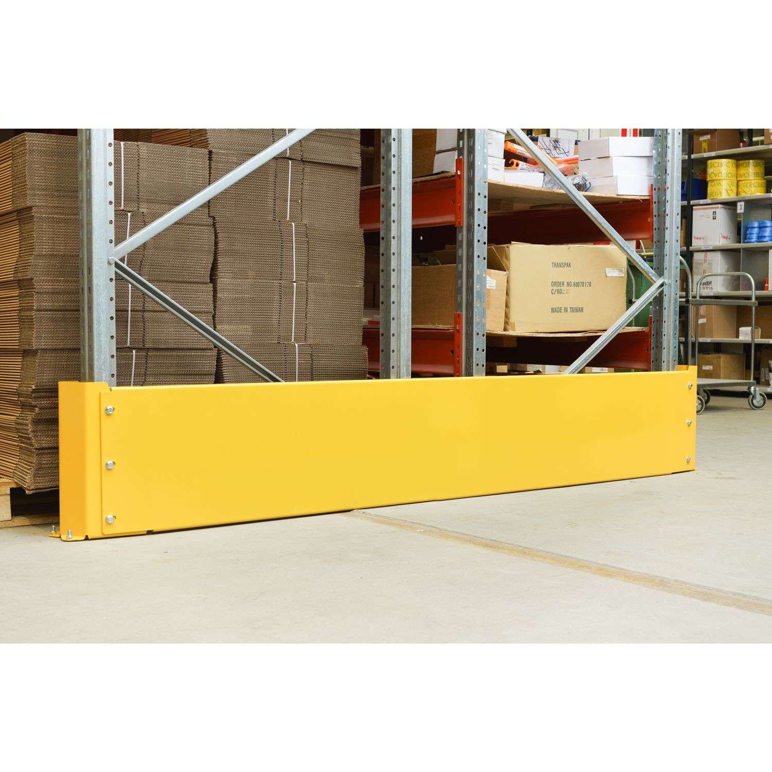 Påkörningsskydd i ett aktivt lager måste tåla mer än en enstaka smäll. Därför är denna modell byggd i stål och ytbehandlad för att klara vardagens slitage. Den varmförzinkade stålkonstruktionen hjälper till att motstå korrosion, även i miljöer där golv och utrustning tvättas regelbundet. Ovanpå detta är skyddet pulverlackerat i gul RAL 1004, en kulör som fungerar som varningsmarkering och gör skyddet lätt att upptäcka på avstånd.